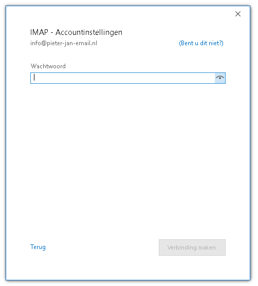 Het kan voorkomen dat Outlook direct verbinding probeert te maken en zal daarom vragen om een wachtwoord. Omdat we dit juist niet willen, vullen we hier een foutief wachtwoord in.