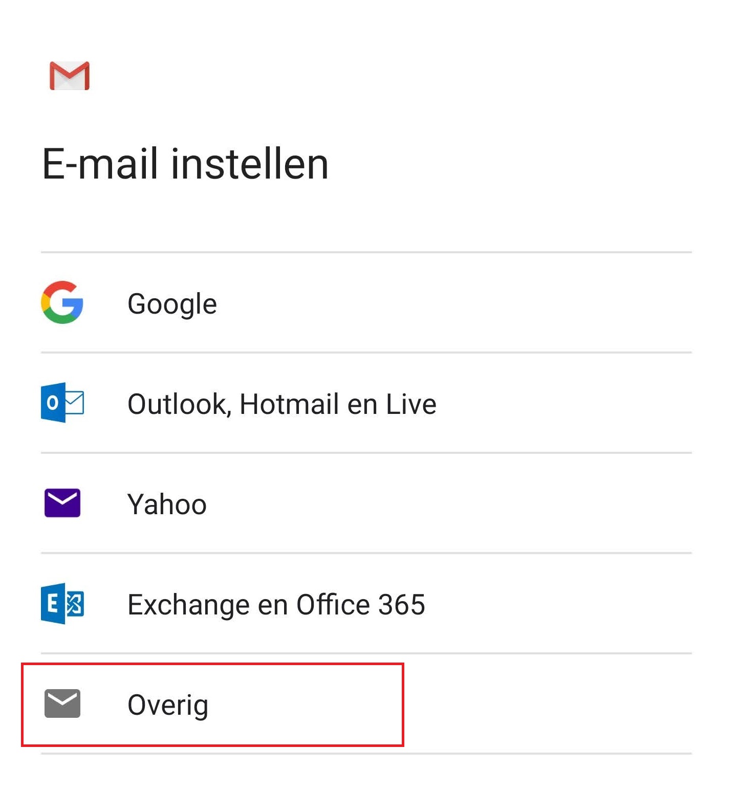 U dient nu het betreffende accounttype te selecteren. Kies hier voor 'Overig'.