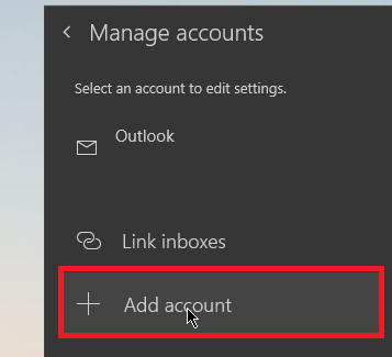 Kies in het volgende venster de optie 'Account toevoegen' of 'Add account' en ga naar de volgende stap.