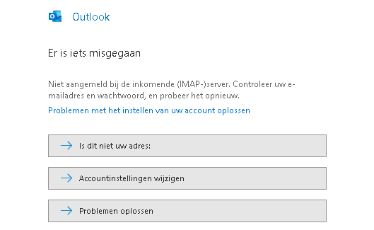 Wanneer u deze foutmelding krijgt kunnen er verschillende punten foutgaan: van een foutief wachtwoord tot aan de verkeerde mailservers.