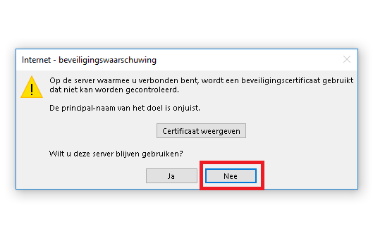 Wanneer u deze melding krijgt gaat er iets mis in de verbinding die word opgezet aan onze mailservers. We gaan nog een paar stappen doorlopen om dit op te lossen.