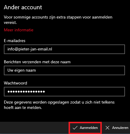 In dit venster kunt u uw e-mailadres en wachtwoord invullen.