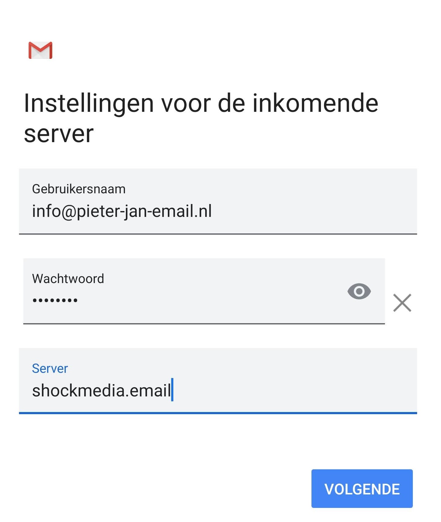 Op deze pagina dient u de instellingen voor de inkomende E-mail server in te voeren. Deze kunt u vanuit hieronder uit het tabel overnemen.